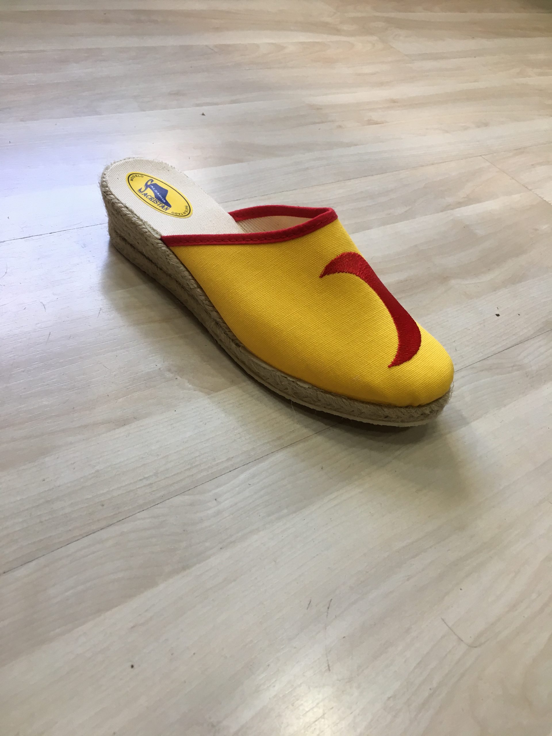 Zueco de lona para comparsas del Bando Moro. Hay dos tipos de cuñas disponibles cuña alta (22€) y cuña baja (20€)